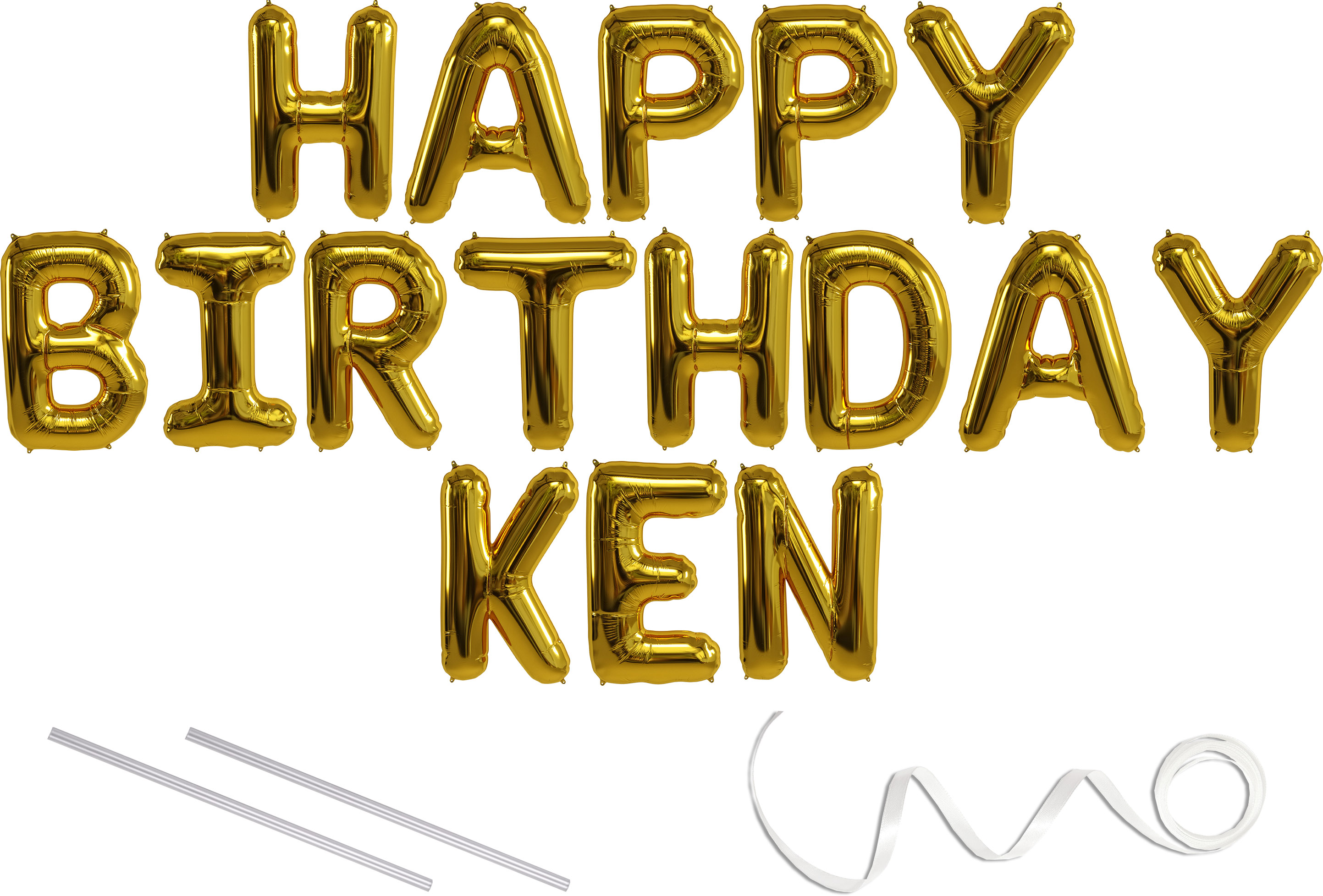 Ken Happy Birthday Mylar Balloon Banner Gold 16 Inch Letters Includes 2 Straws For Inflating String For Hanging Air Fill Only Does Not Float W Helium Great Birthday Decoration Walmart Com